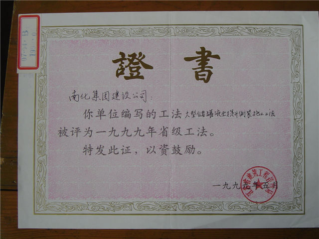 3 | 气顶法建造大中型拱顶贮罐工法 | 1991年省二级工法 | 朱启南 | 1991.02 |