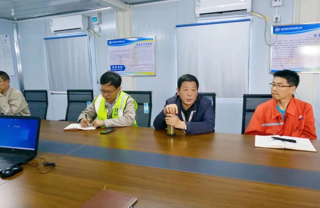 武总就组织干好项目提出要求。1、质量方面:要严格按照业主及管理公司的建设标准,高标准严要求推进项目建设,精心组织现场施工,努力把项目建设成典范工程。2、进度方面:要根据工期紧、任务重的实际情况,对项目建设进行周密部署、严密实施,确保项目按时间节点稳步推进。3、安全方面:在安全管理方面,要实施重点监管,牢守安全底线。项目经理、安全经理要组织全体员工深入学习宣传贯彻新《安全生产法》,增强全员安全责任意识,树牢安全发展理念,坚决落实安全生产责任制。加强现场安全管控,做好项目安全隐患排查及整改工作,对重大危险源进行识别以及风险评估,稳步推进项目建设。