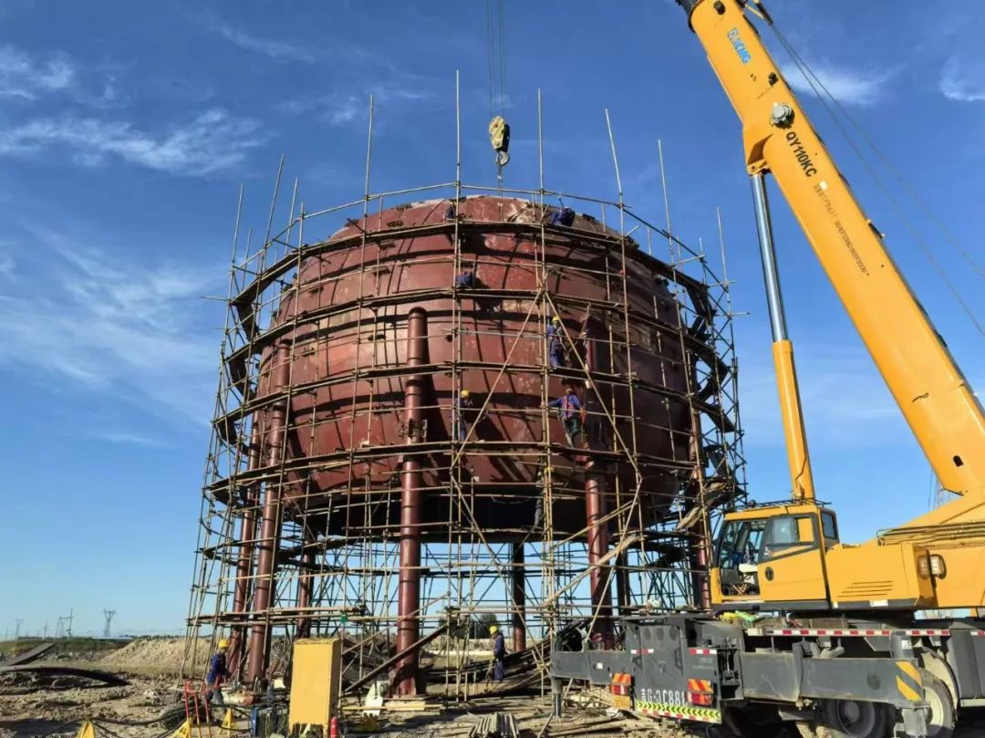 今年6月,公司承接了吉林省洮南市风电藕合生物质绿色甲醇一体化项目联合压缩 1、2 工段、甲醇合成、甲醇精馏、中控室等众多工段的所有建安工作以及全场的配套设施。该项目充分利用白城市洮南地区丰饶的可再生资源,即风能与生物质,全力打造生物质气化与风电制氢绿色甲醇一体化的宏伟工程。项目以生物质为源,采用上海电气的加压循环流化床气化技术,将产出的粗煤气经压缩、净化后,再经甲醇合成、精馏等工序,最终生产出绿色甲醇。目前,项目正如火如荼地推进着,施工任务极为繁重,前行之路荆棘丛生,却充满挑战。公司党组织始终如一面鲜艳的旗帜,引领着大家奋勇前行。支部书记马良钱和党员魏礼程、季魁、贾屿充分发挥党员的先锋模范作用,带领全体项目人员齐心协力、克难攻坚。