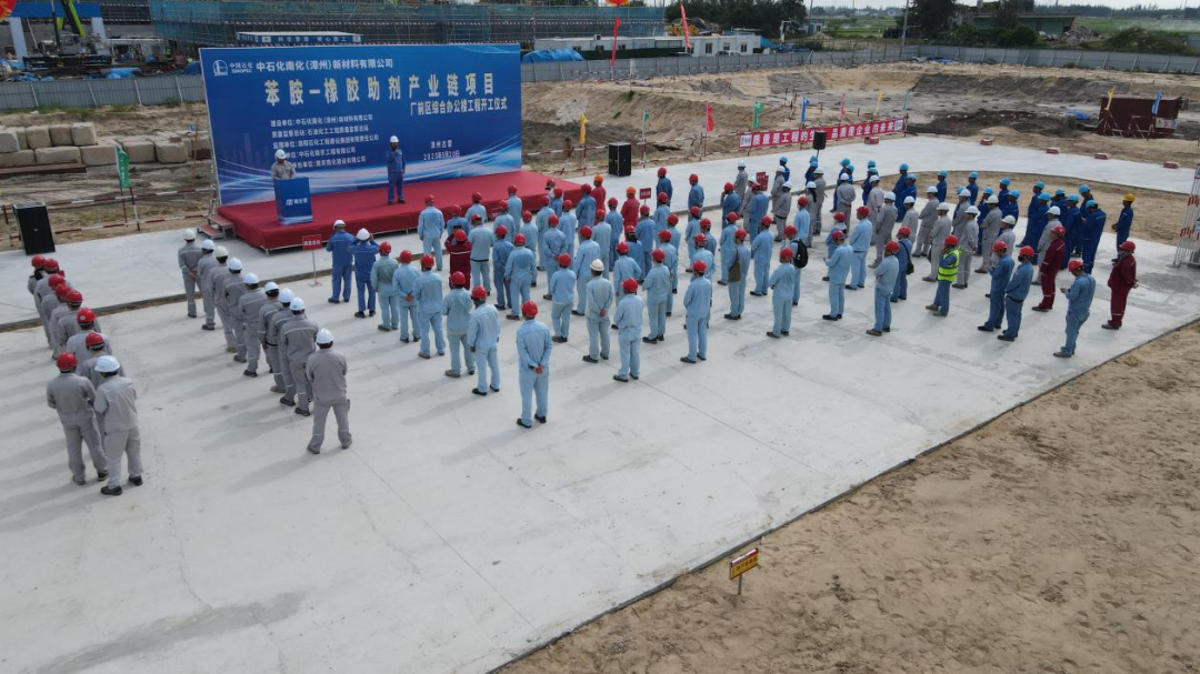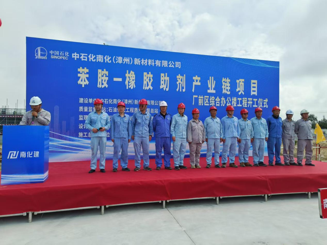2025年5月20日上午8点58分,由公司承建的福建漳州古雷苯胺-橡胶助剂产业链项目厂前区综合办公楼工程开工仪式顺利举行。