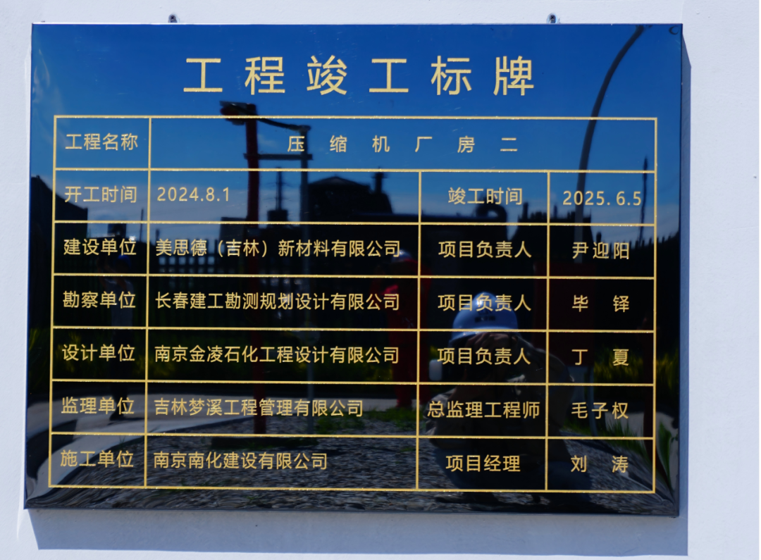 本次竣工验收由美思德(吉林)新材料有限公司组织,吉林市工程质量监督站验收科、设计单位、监理单位、勘察单位、施工单位等及相关部门共同参与。验收组通过听取汇报、查阅资料、实体检查等方式,对项目施工质量、功能实现等进行了全面核查。经综合评定,各方一致认为该项目符合国家相关标准及设计要求,工程质量合格,同意通过竣工验收。